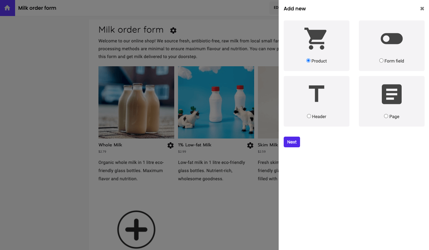 Quickly create new forms by duplicating existing ones, or easily rotate your menu by toggling products visibility in the original forms